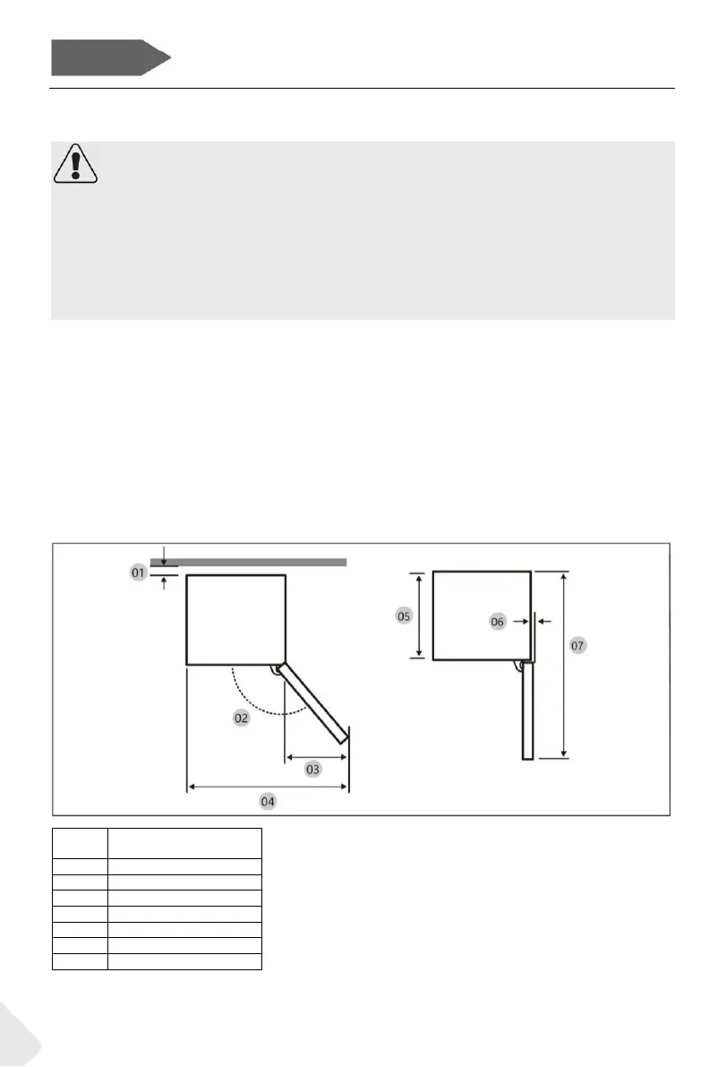 Προτεινόμενος χώρος όταν η πόρτα είναι ανοιχτή (χωρίς το πάνελ της πόρτας