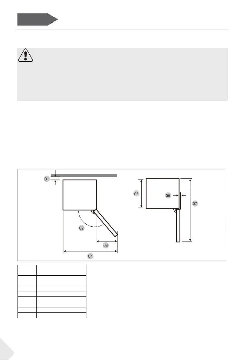 Espace conseillé lorsque la porte est ouverte (sans panneau de porte)