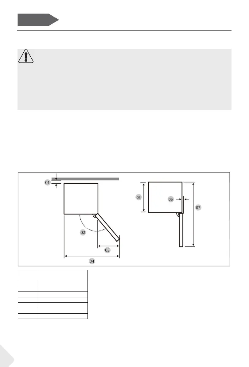 Helyszükséglet nyitott ajtó mellett (szekrény ajtópanel nélkül)