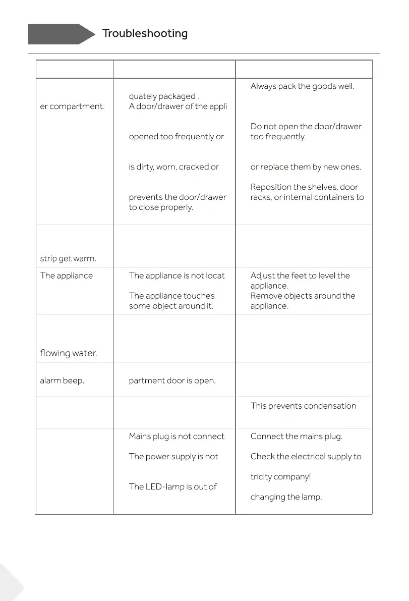 • The fridge storage com- • Close the door.