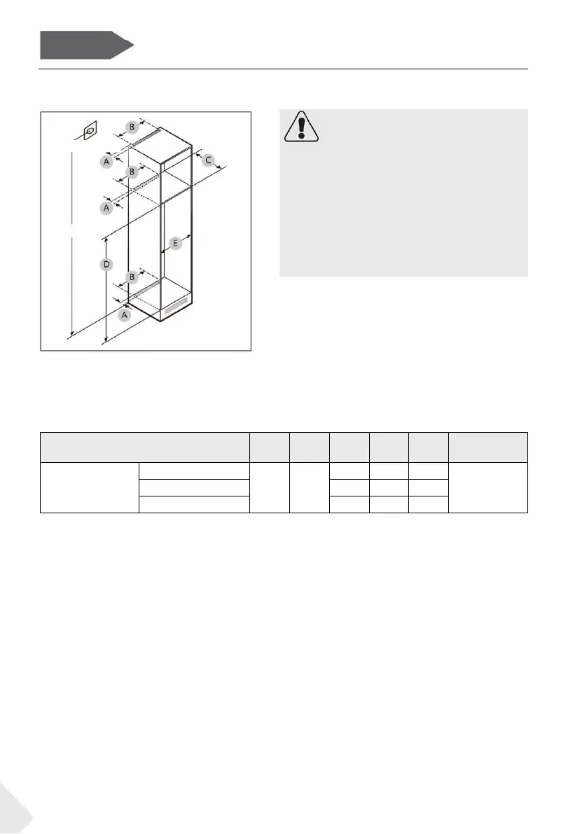 Zie de afbeeldingen en tabellen hieronder voor de benodigde ruimte voor installatie.