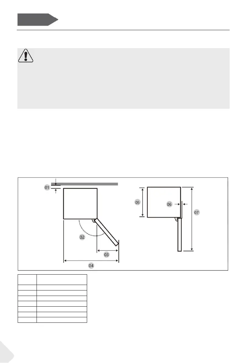 Zalecana przestrzeń po otwarciu drzwi (bez panelu drzwi szafki)