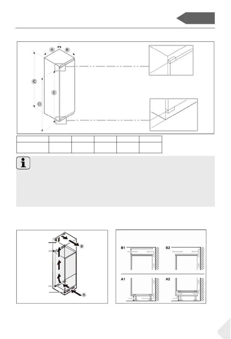 • Priporočamo uporabo omarice debeline 19 mm s tečaji debeline manj kot 17 mm.