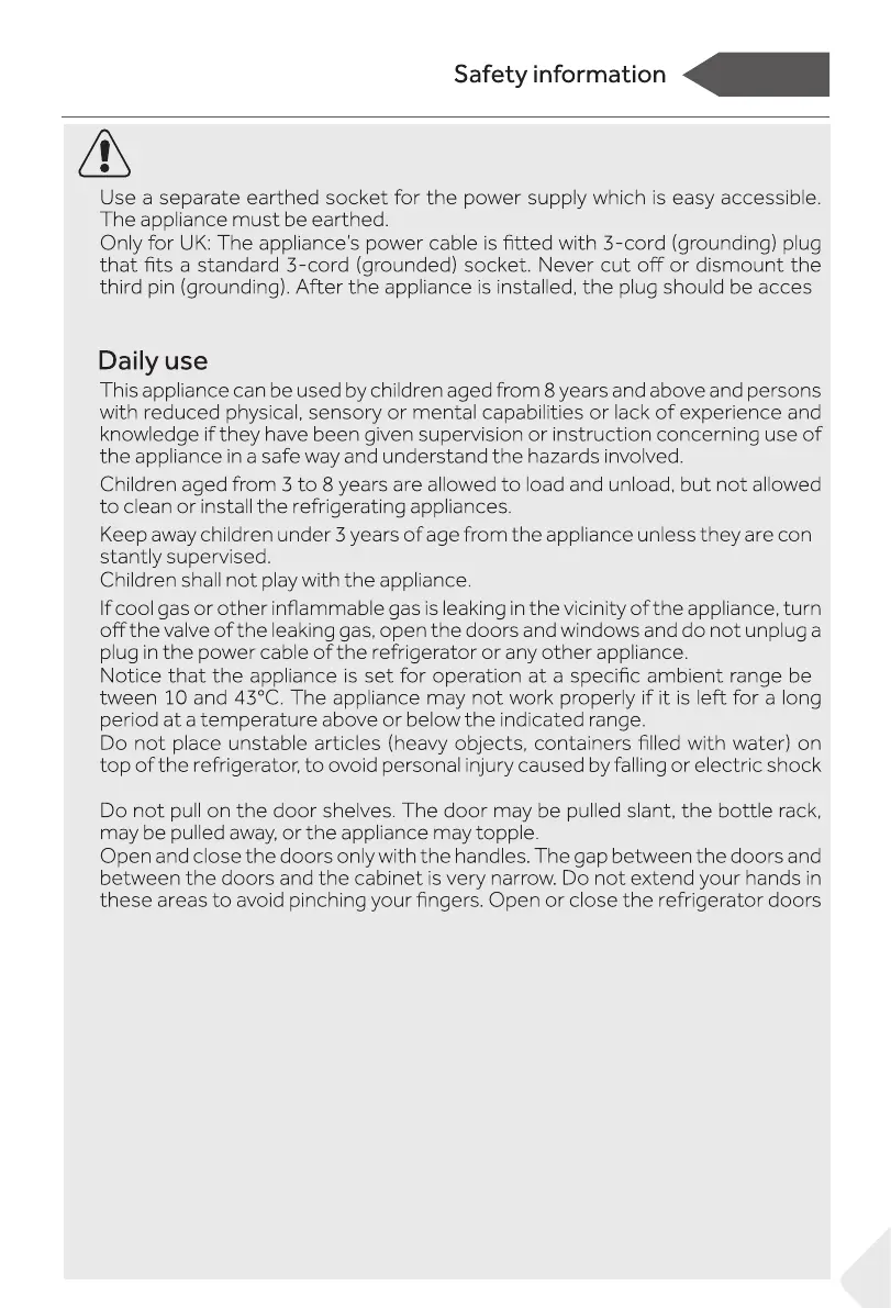 – If product is left empty for long periods, switch off, defrost, clean, dry, and leave