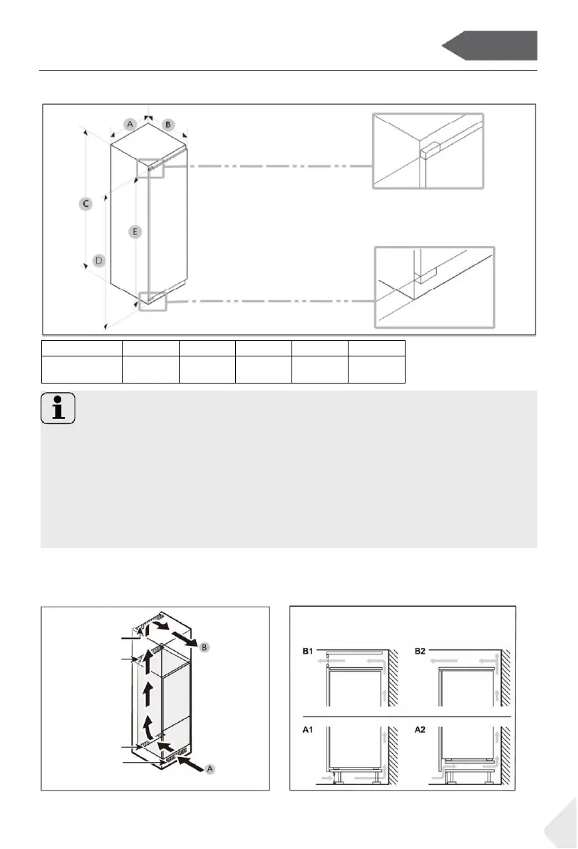 Abstands zwischen Schrank und Rückseite des Produkts. Das Produkt