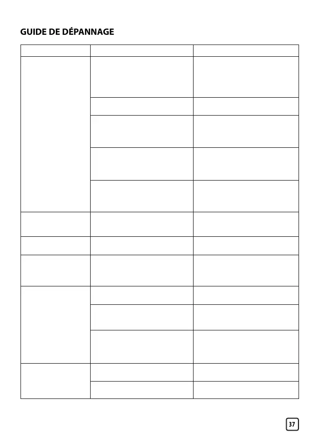PROBLÈME CAUSES POSSIBLES SOLUTIONS