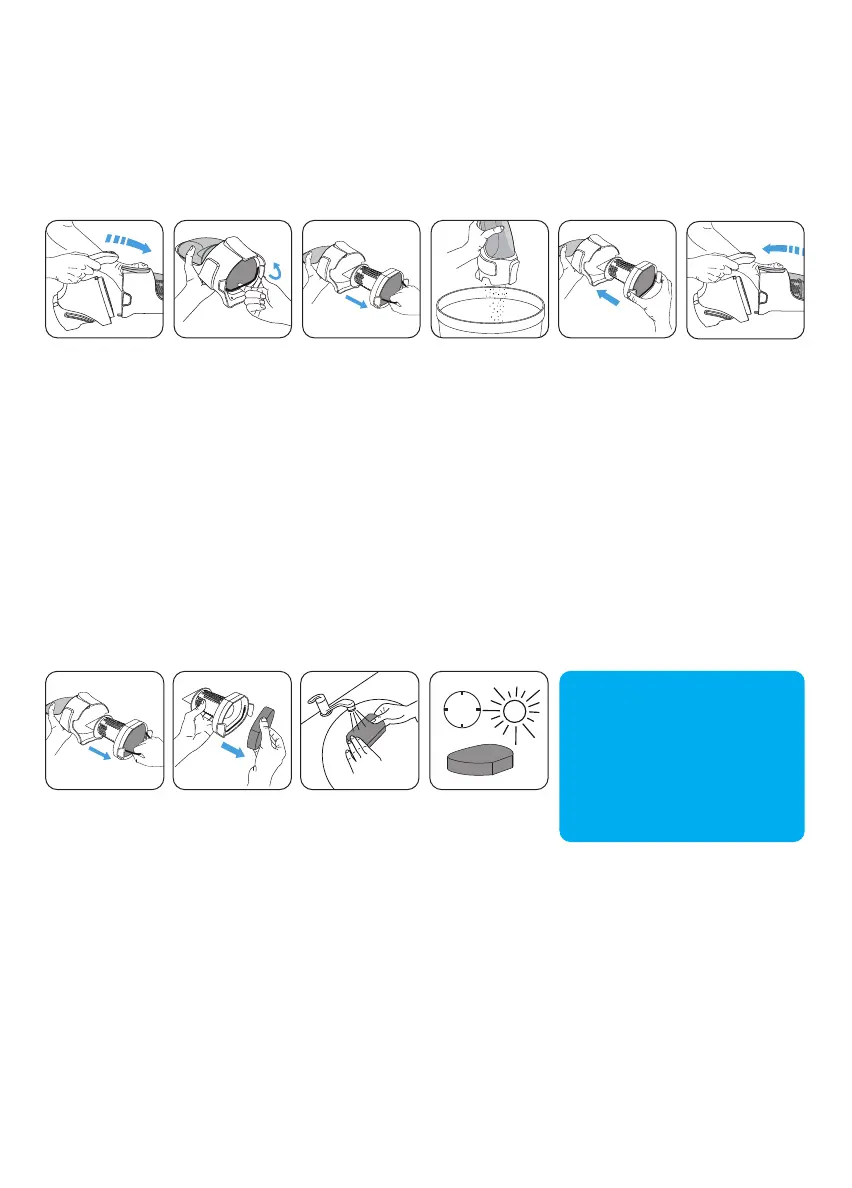 (їм) висохнути або витріть його (їх) м’якою тканиною. Ніколи не мийте ні пилозбірник, ні сепаратор в посудомийній