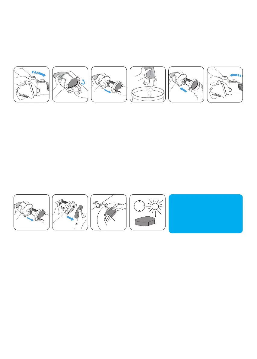 HUOMAA : pölykotelon ja/tai erottelijan puhdistamiseksi se/ne on laitettava haalean veden alle ja sen/niiden on