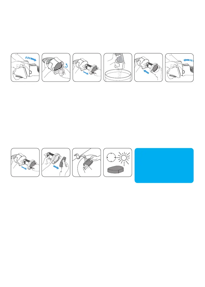 OBSERVAŢIE : pentru a curăţa rezervorul de praf şi/sau separatorul, treceţi-l(le) sub un jet de apă călduţă şi lăsaţi-l(le) să se