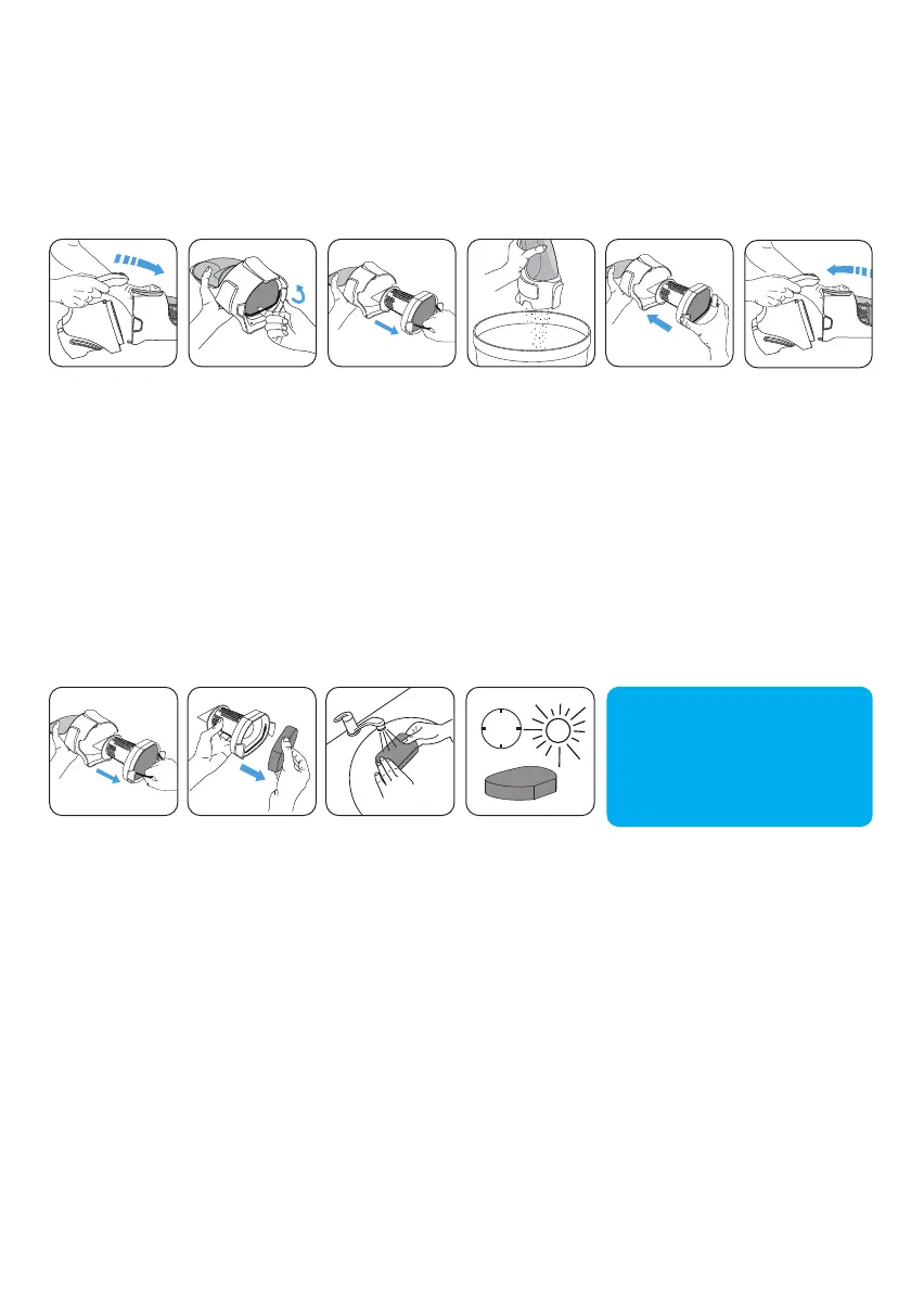 NAPOMENA : ako želite očistiti spremnik za prašinu i/ili separator, stavite ga/ih pod toplu vodu i pustite ga/ih da se