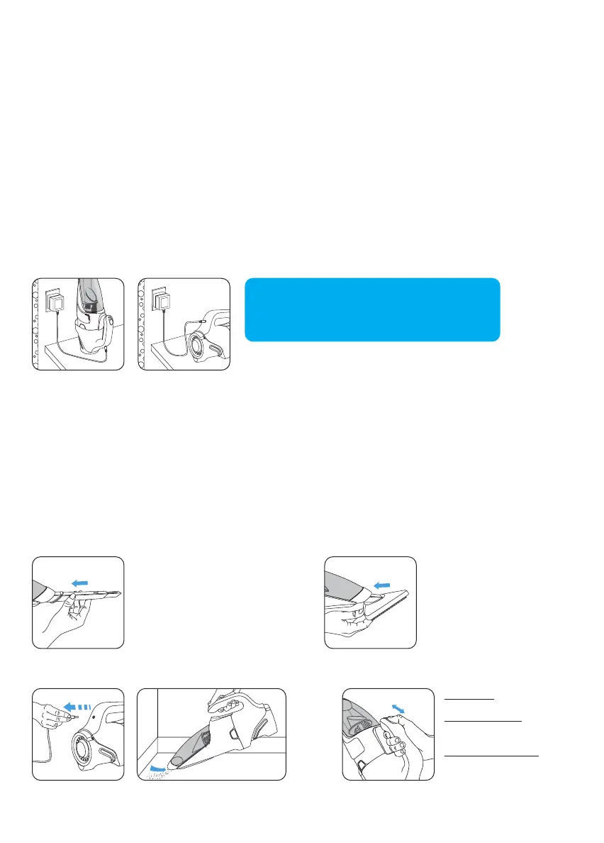 Включване на уреда.  Регулиране мощността на засмукване.