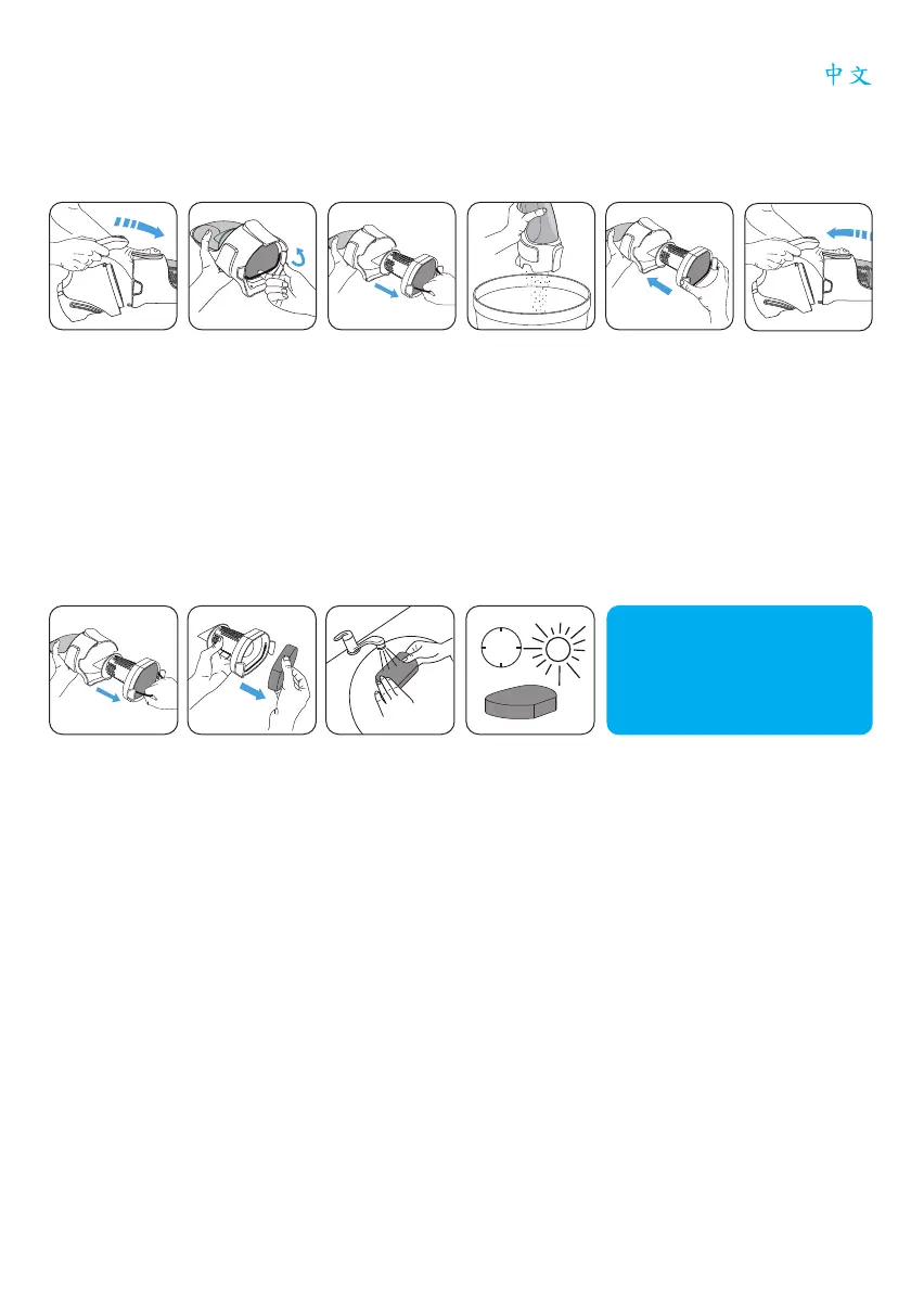 请用温水清洗尘袋及分离罩,并用软布擦干或晾干。