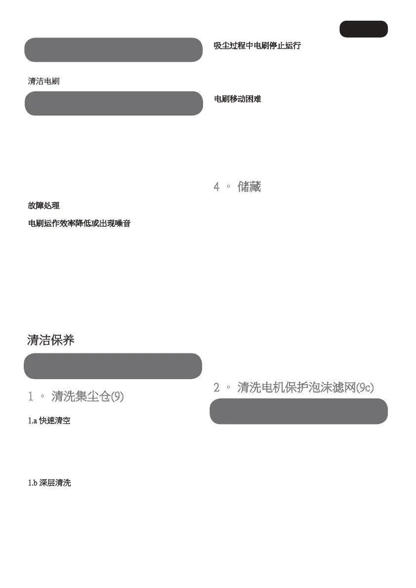 • 旋转刷或伸缩软管受到阻塞:关闭吸尘器,清