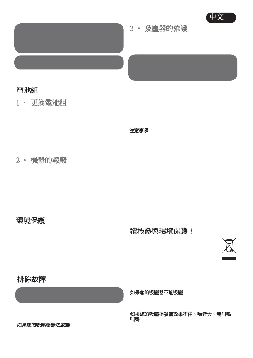 成。自行修理本吸塵器將會給使用者帶來危險。
