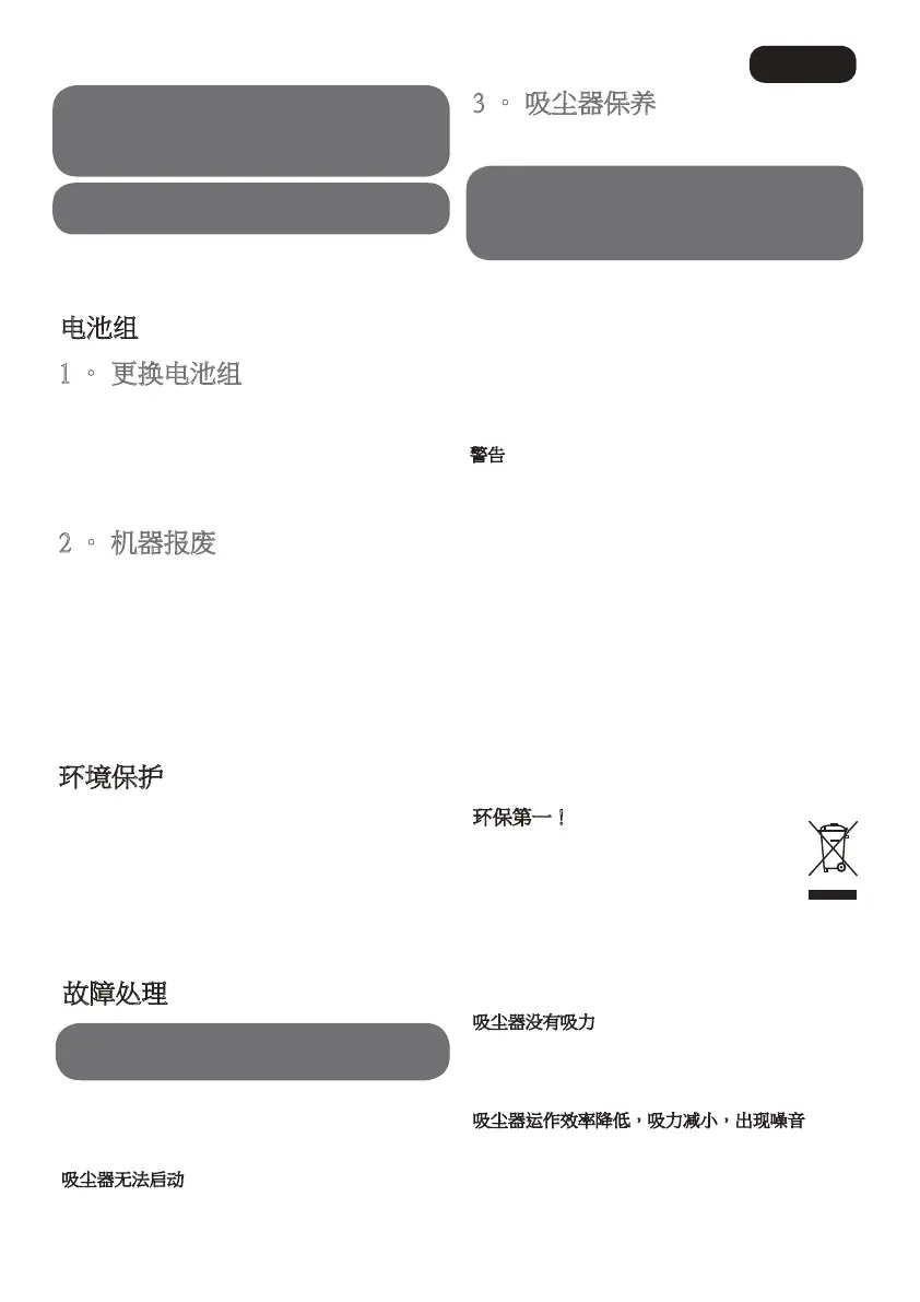 重要!若吸尘器运作异常,在进行任何检查前,请