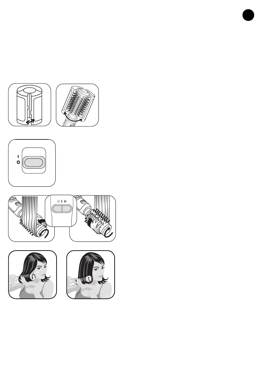 tica el mechón de cabello alrededor del cepillo, para