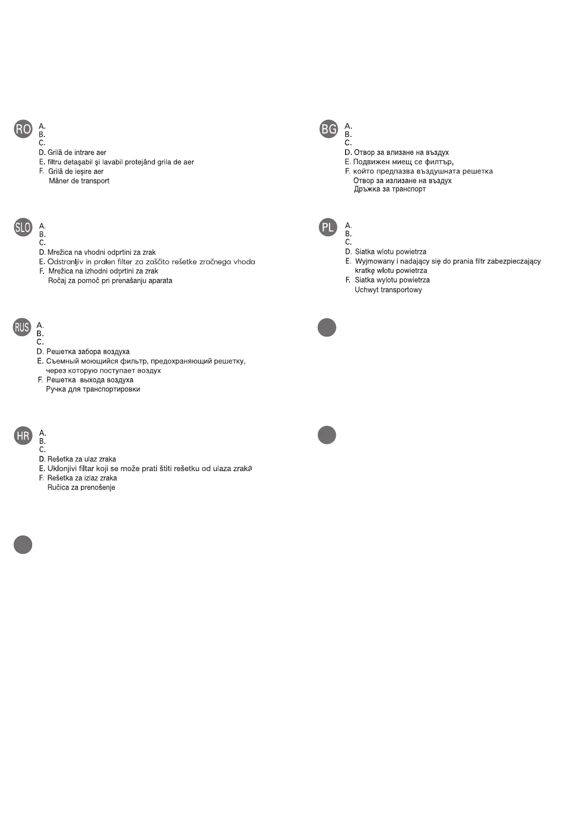 F. Rešetka za izlaz vazduha