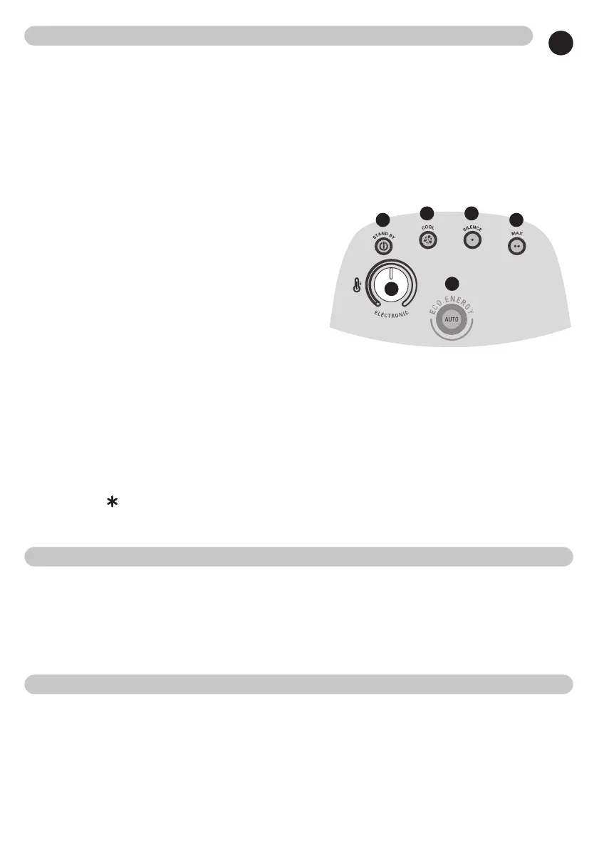 Knapp 5 "ECO ENERGY" : 1000 W TYST, automatiskt 21 °C