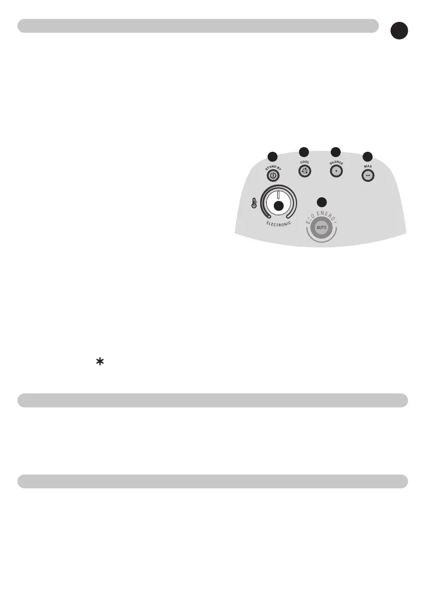 Näppäin 5 ‘ ECO ENERGY’ : 1 000 W SILENCE säädetty automaattisesti 21°C:een