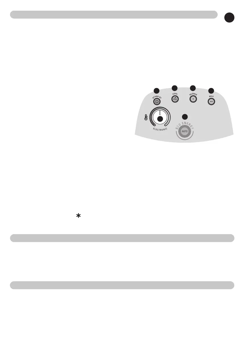 Knapp 5 ”ECO ENERGY”: 1000 W SILENCE automatisk regulert til 21 °C