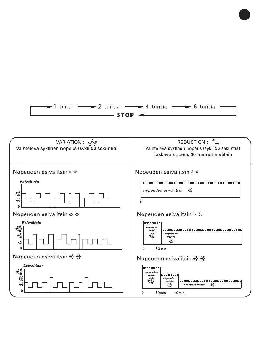 • Valitsin B, laitteen automaattipysäytyksen ohjelmointi: