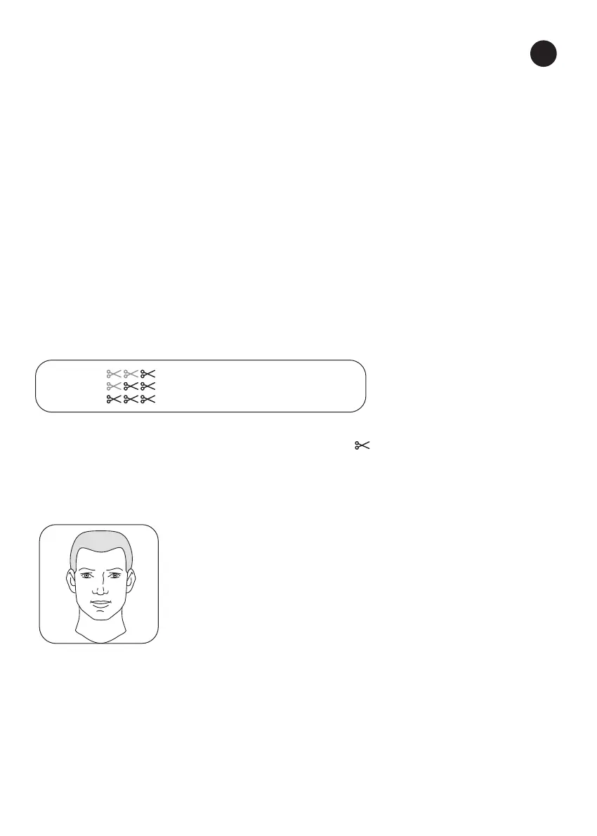 • Darauf achten, dass die Haarschneidemaschine immer schräg zum Kopf steht.