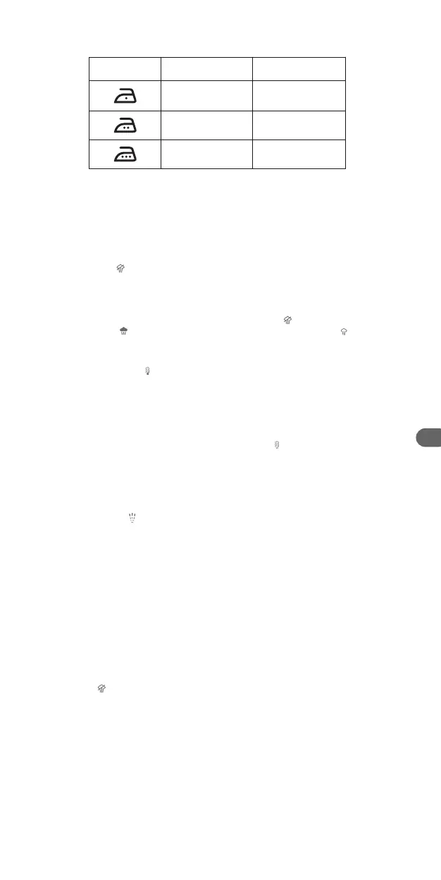Ångfunktion* Det går att ställa in ångmängden mellan • (minimal ångmängd) och
