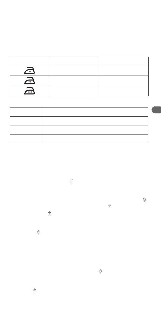 ønsker at stryge (fig. 3). Kontrol af temperaturen*: Lysdioderne angiver, om sålen