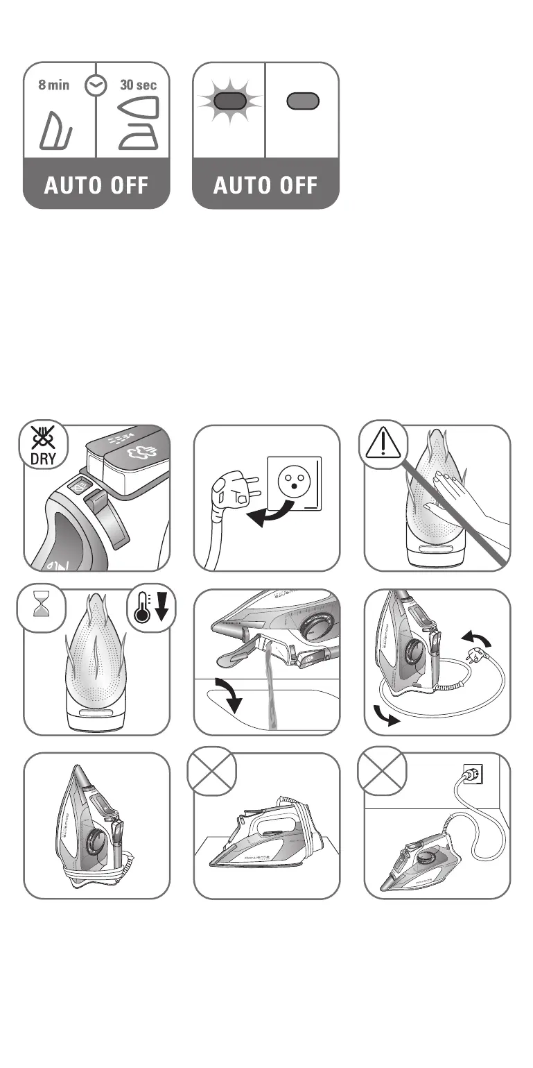 DA Opbevaring af strygejern • SV Förvaring av strykjärnet • NO Oppbevaring av jernet