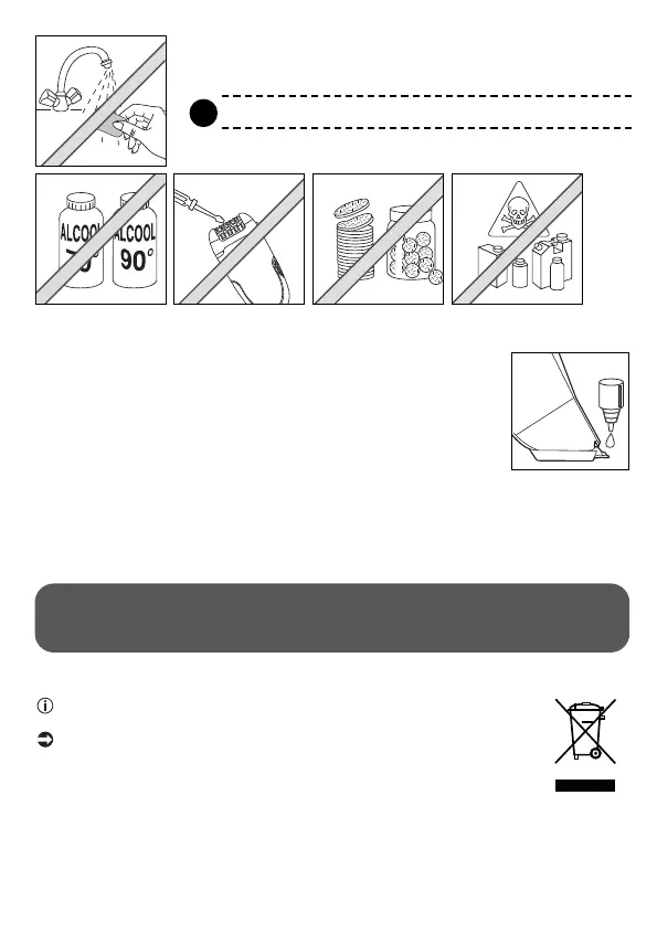 Avoid applying alcohol to the body of the appliance so as not to fade its colours.