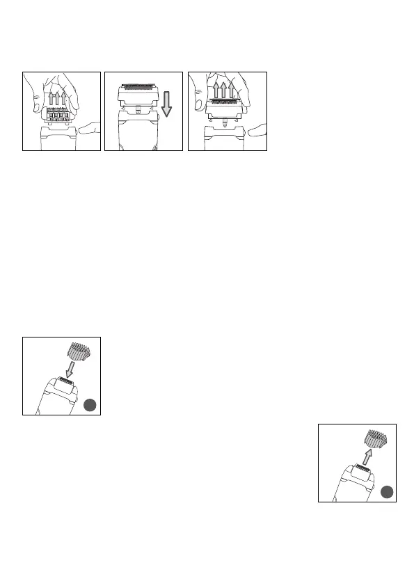 - Oter la tête d'épilation en appuyant sur le bouton d'éjection.