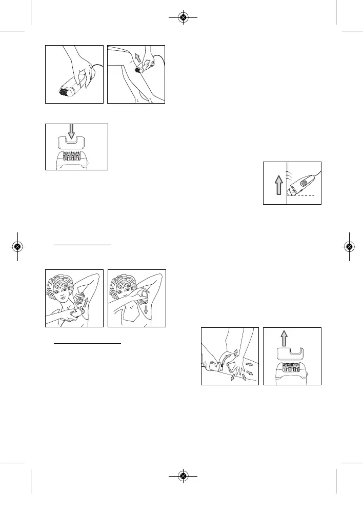 - Fit the armpit accessory (12) onto the epilator head and push in until you hear a click.