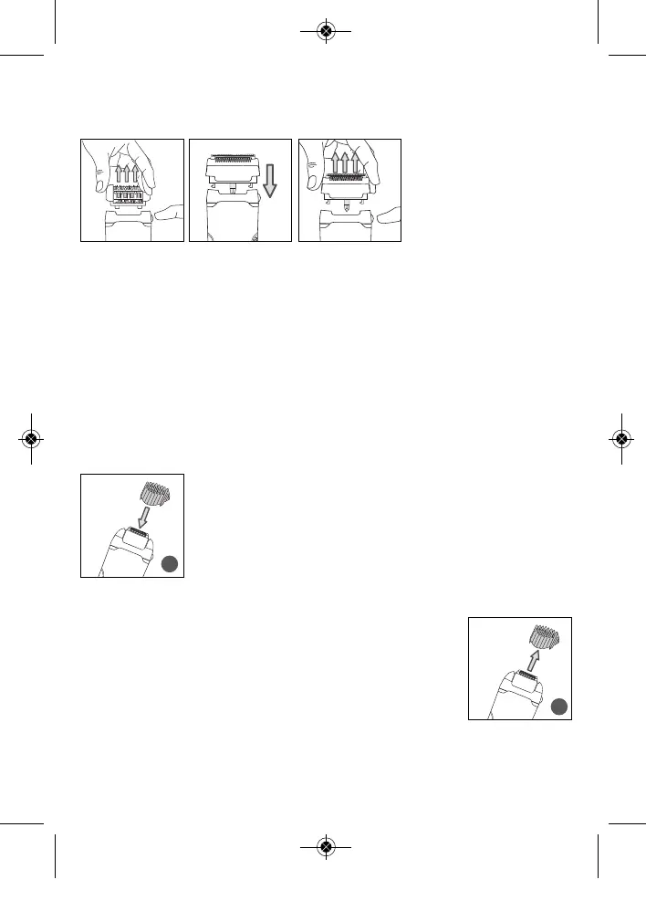 Inserite la testina bikini (21). La testina bikini è dotata di 3 pettini che sollevano i peli