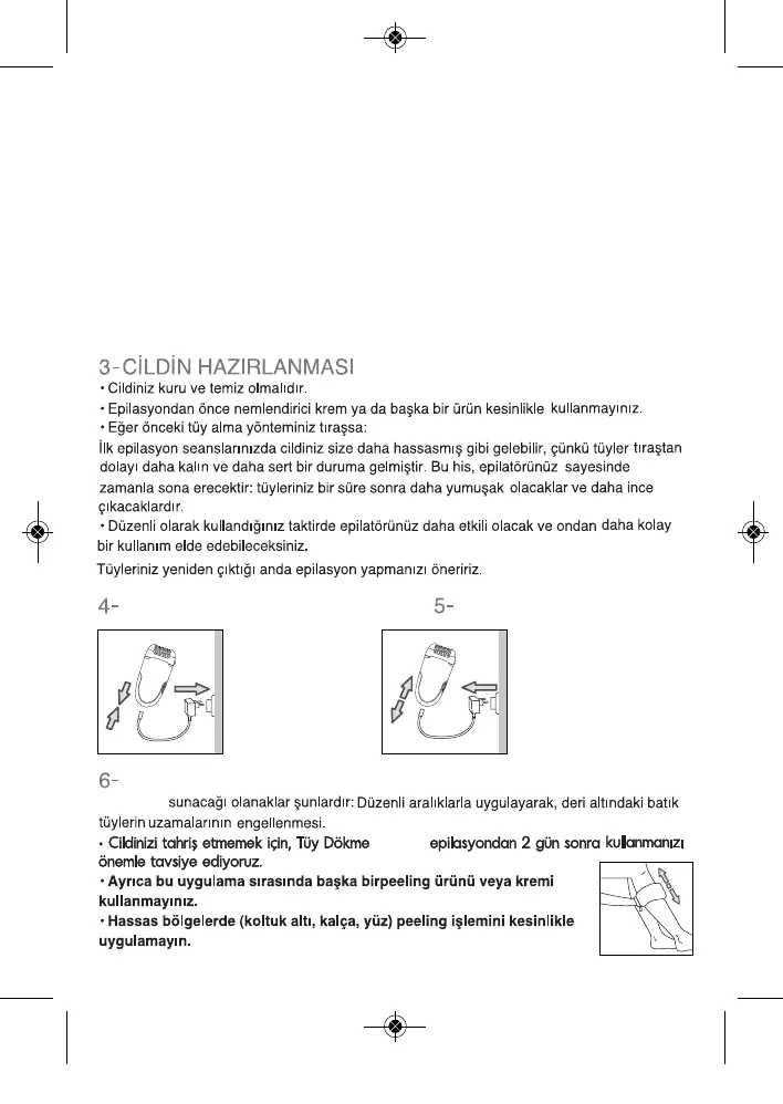 • Cihazın, bikini bölgesindeki kullanımı sırasında, yalnızca bikininin dış çevresinde kullanın.