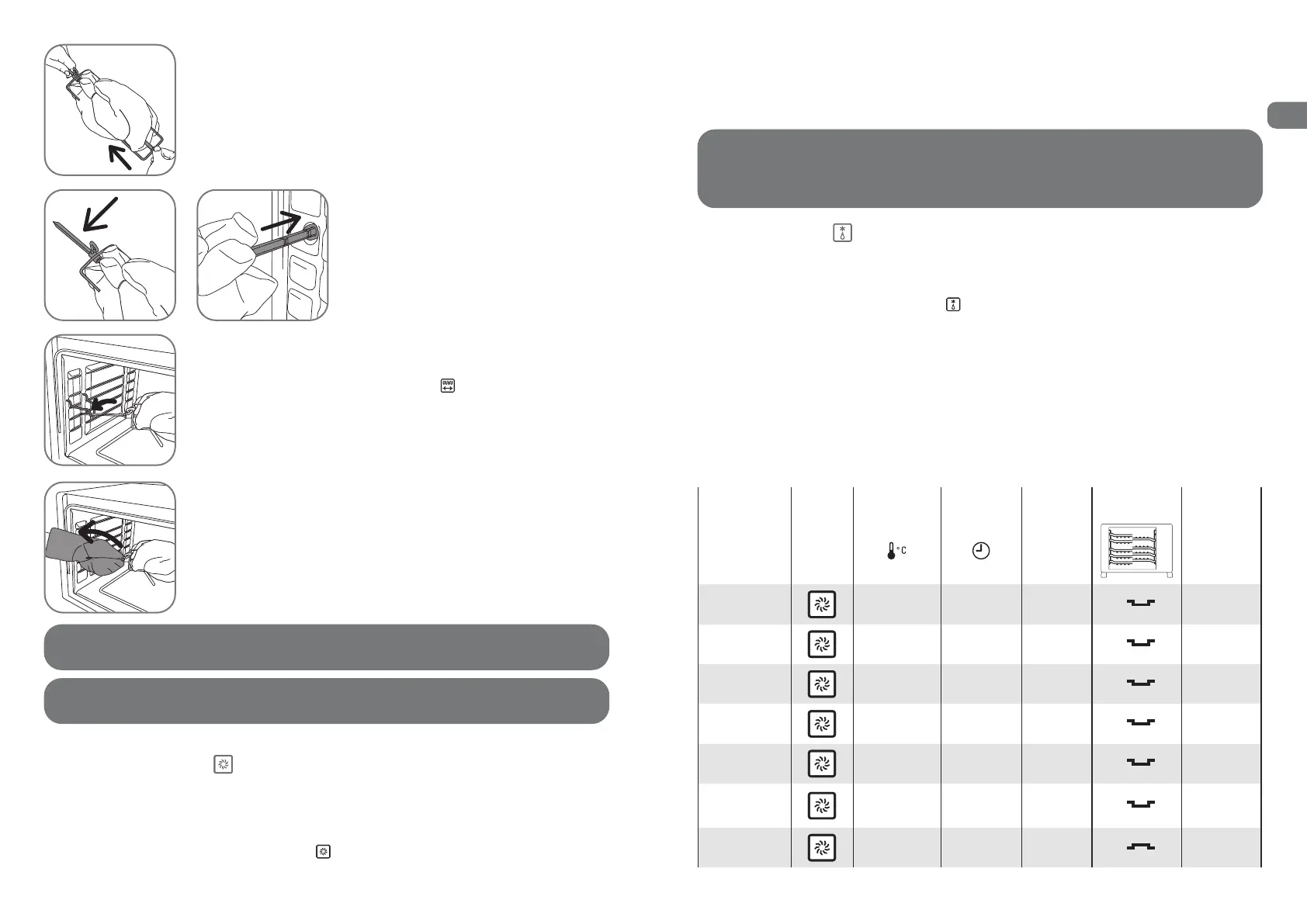 • Voor een geheel uniform bakproces kunt de gerechten op de helft van het bakproces 180° draaien.
