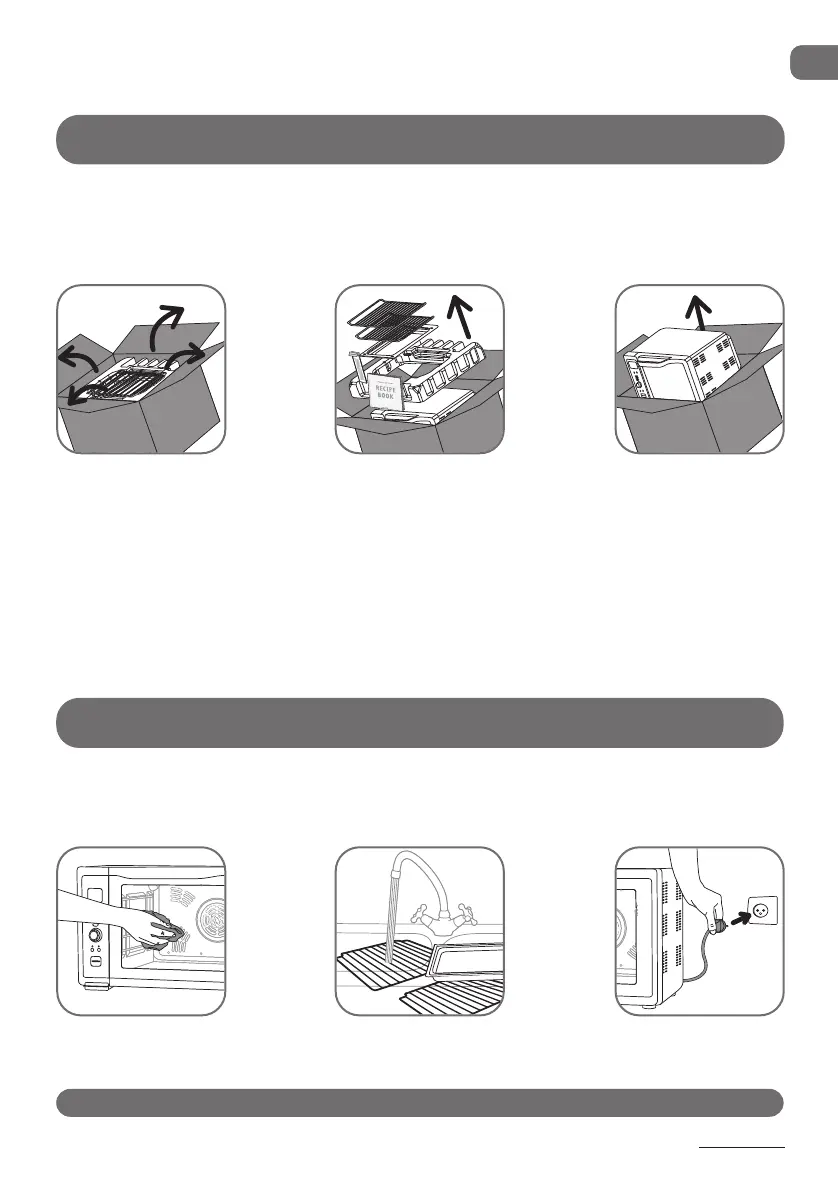 Mettez votre four sur une surface stable. Enlevez tous les autocollants et protections à l’intérieur