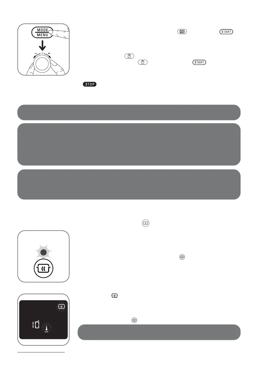 • het kookproces pauzeren/in stand-by zetten door lang te drukken.
