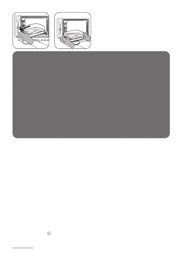 • Stellen Sie die Pfanne weder auf das Backofengehäuse noch auf die Glasfläche derTür.
