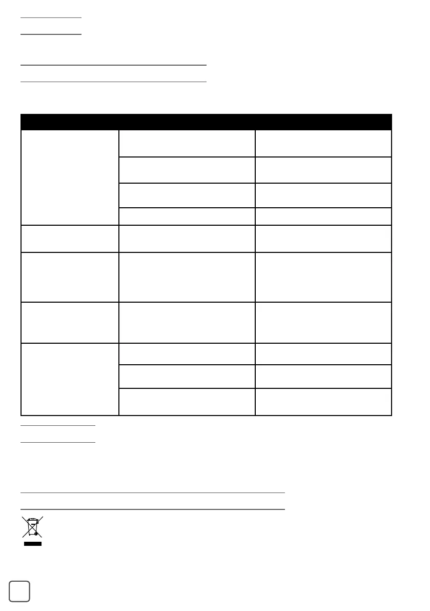 • Check the troubleshooting table below before contacting an approved Service Center: