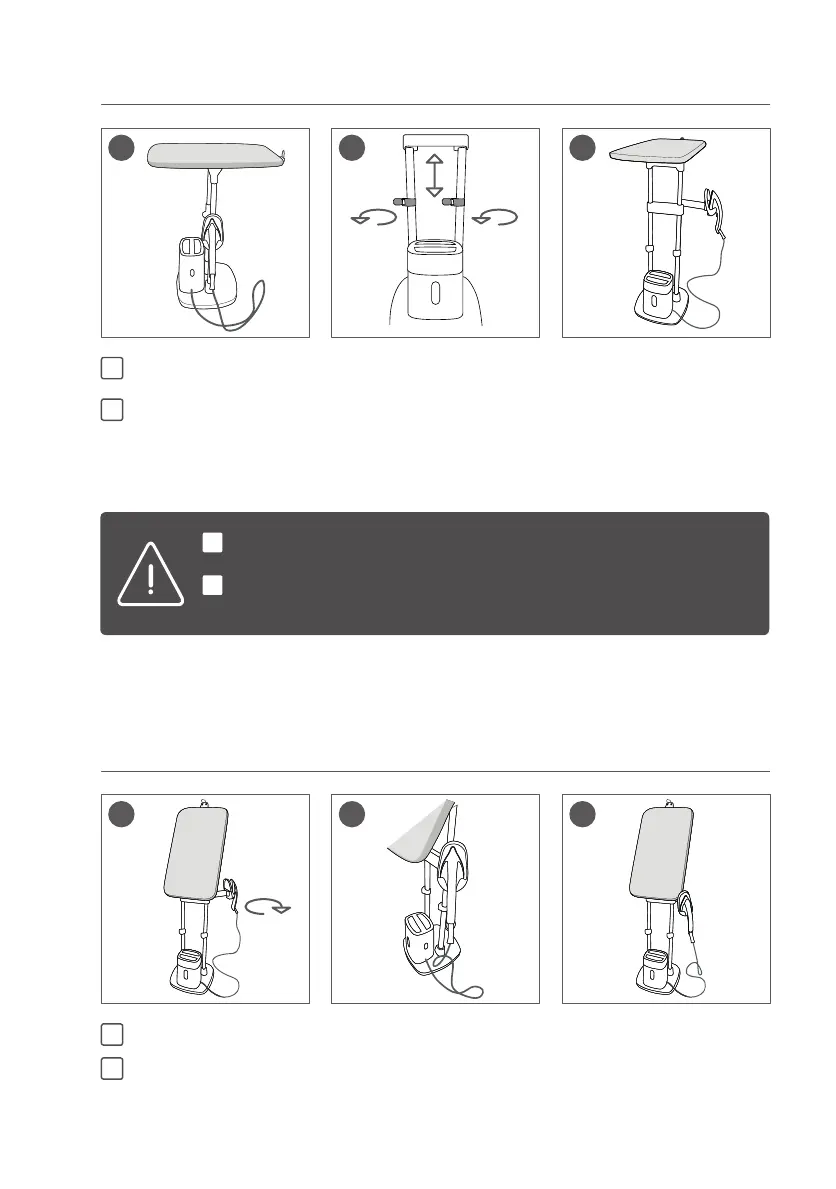 Tijdens het ontgrendelen van de palen kan de strijkplank omlaag gaan.