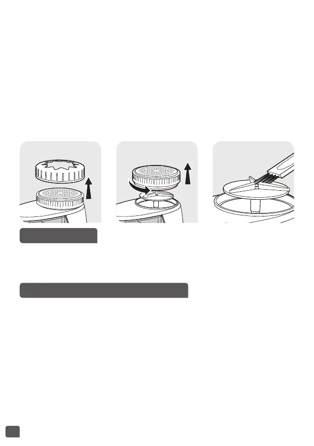 4. Limpie el interior del eliminador de pelusas, las cuchillas y el colector