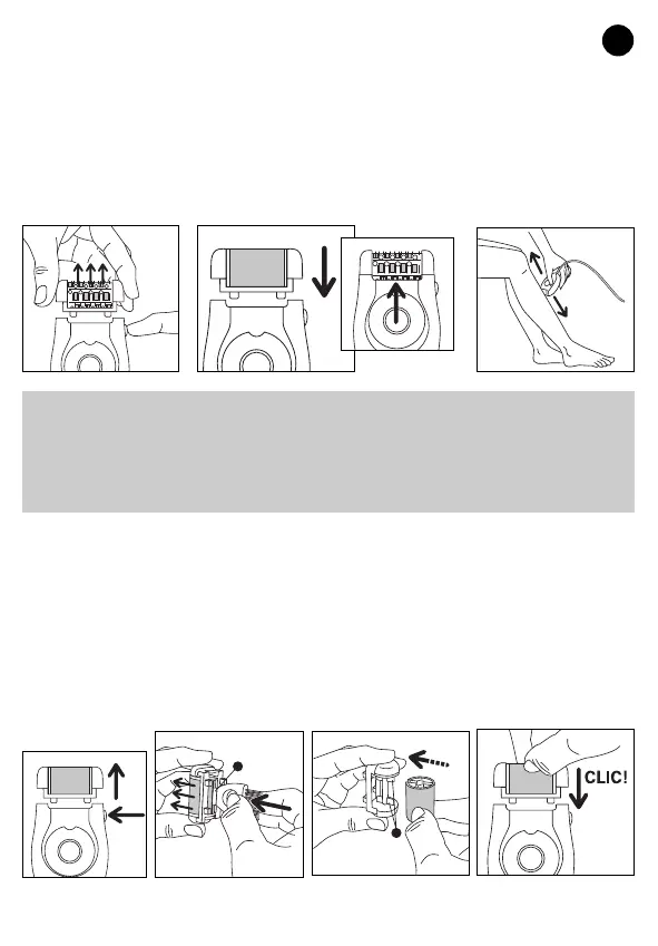 - Entklipsen Sie die Peelingrolle unter Zuhilfenahme des Plastikgriffs (a) der Bürste auf