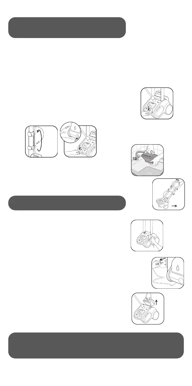 • Push the cord reel pedal to store the power cord, or