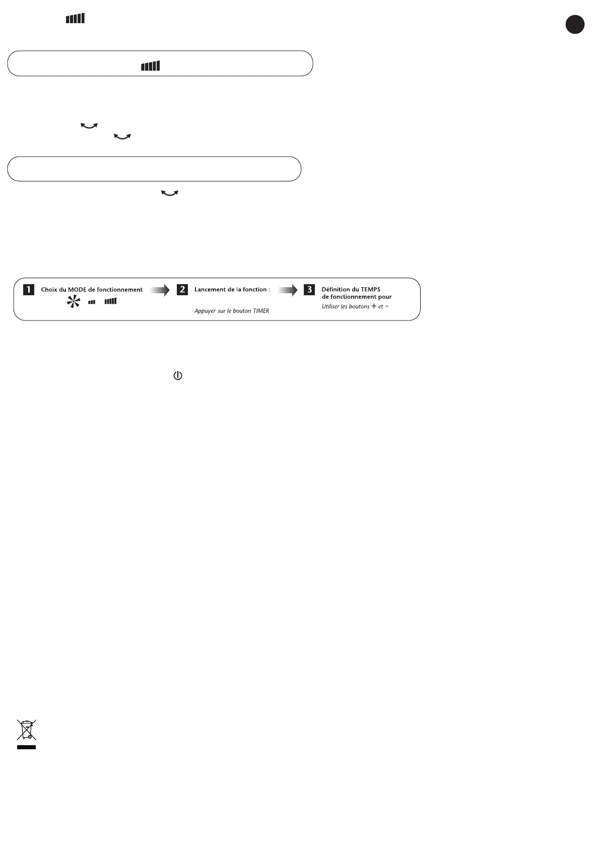 L’appareil fonctionne suivant le MODE que vous avez sélectionné et pendant la durée définie dans TIMER ; il se mettra en veille automatiquement