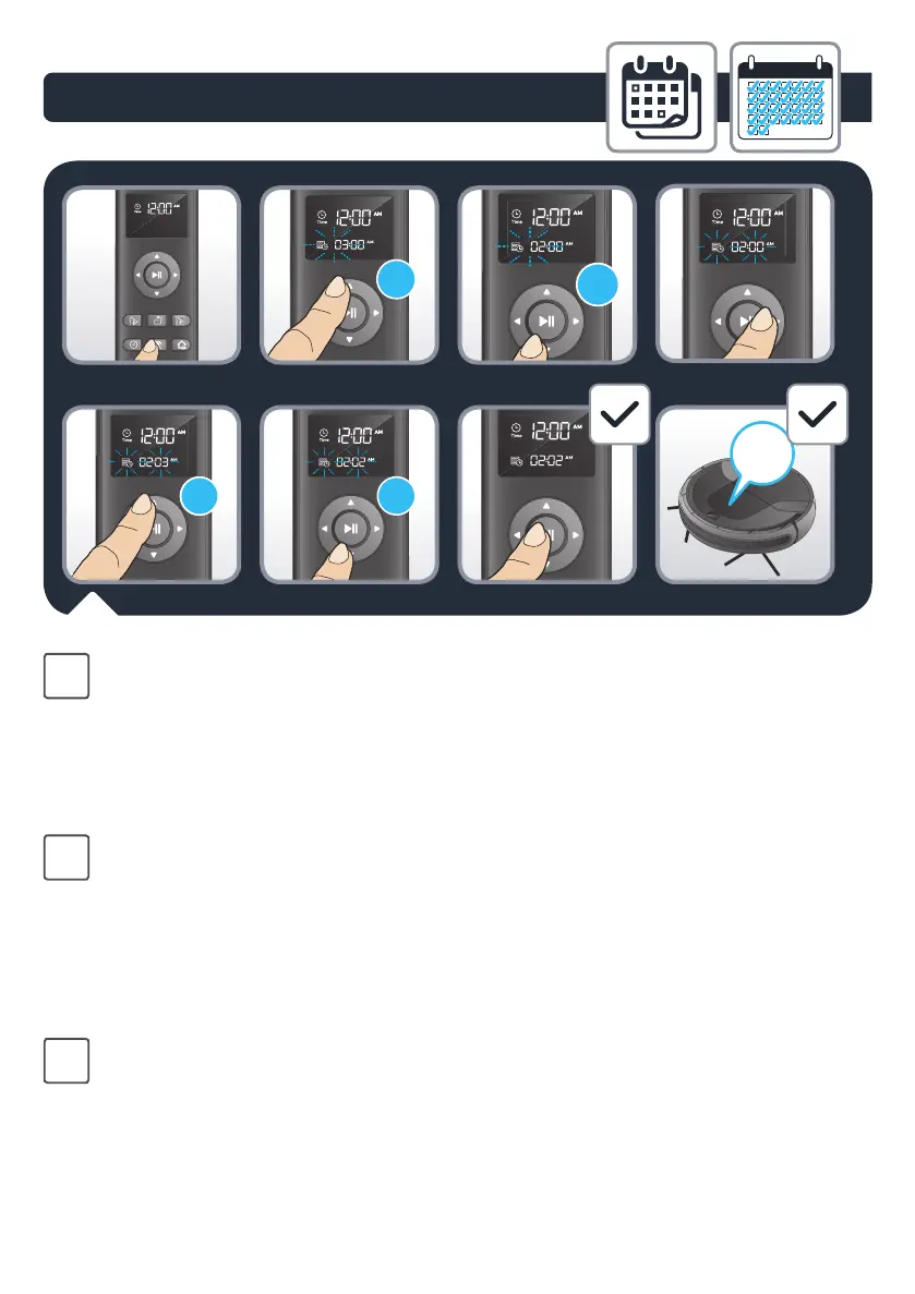 Set the hour to start the cleaning with the up and down arrows on the remote.