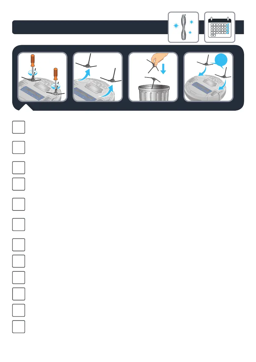 Tire los cepillos viejos y sustitúyalos por nuevos. Atornille los nuevos cepillos al robot.