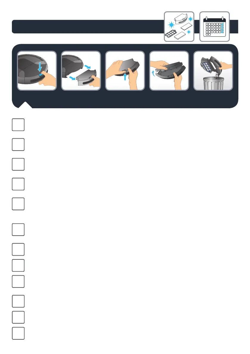 Необхідно спорожнювати і очищати робота принаймні щотижня. Натисніть