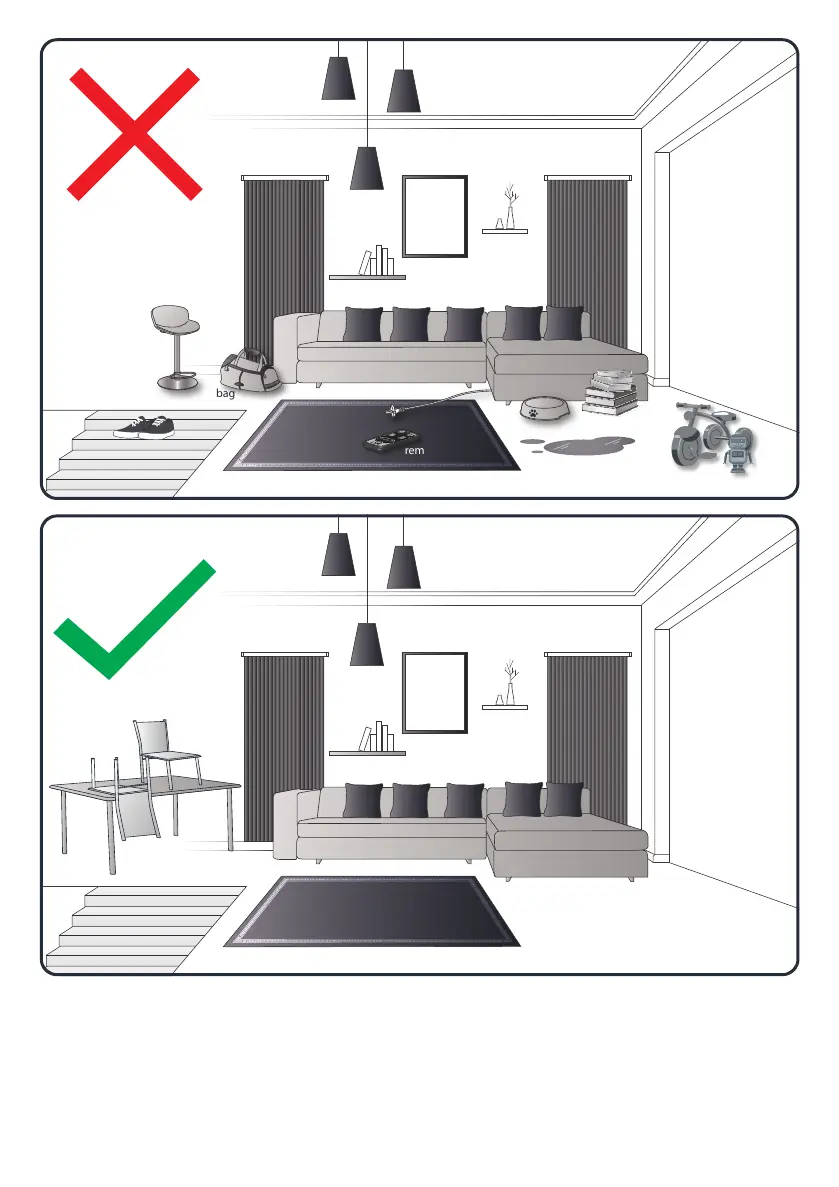 ES Su robot puede tener problemas con las alfombras: con flecos, demasiado gruesas, de pelo largo, excesivamente ligera (por ejemplo la alfombra de un baño) / PT O seu robot pode