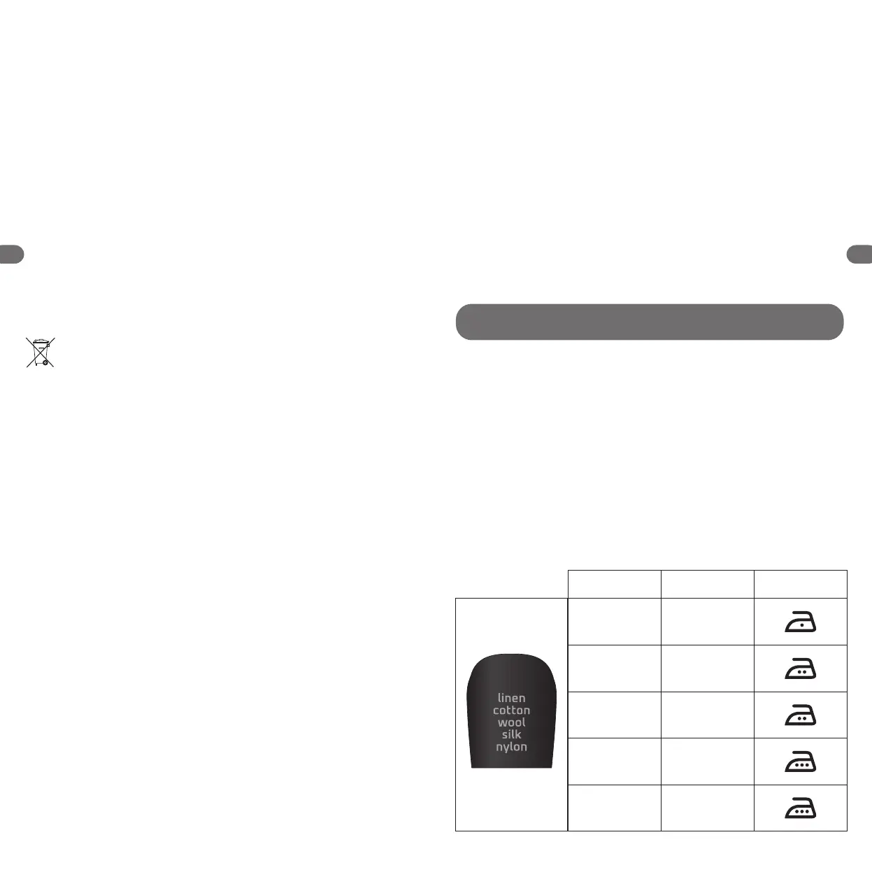 para obter os melhores resultados. Selecione o tecido a engomar premindo o botão