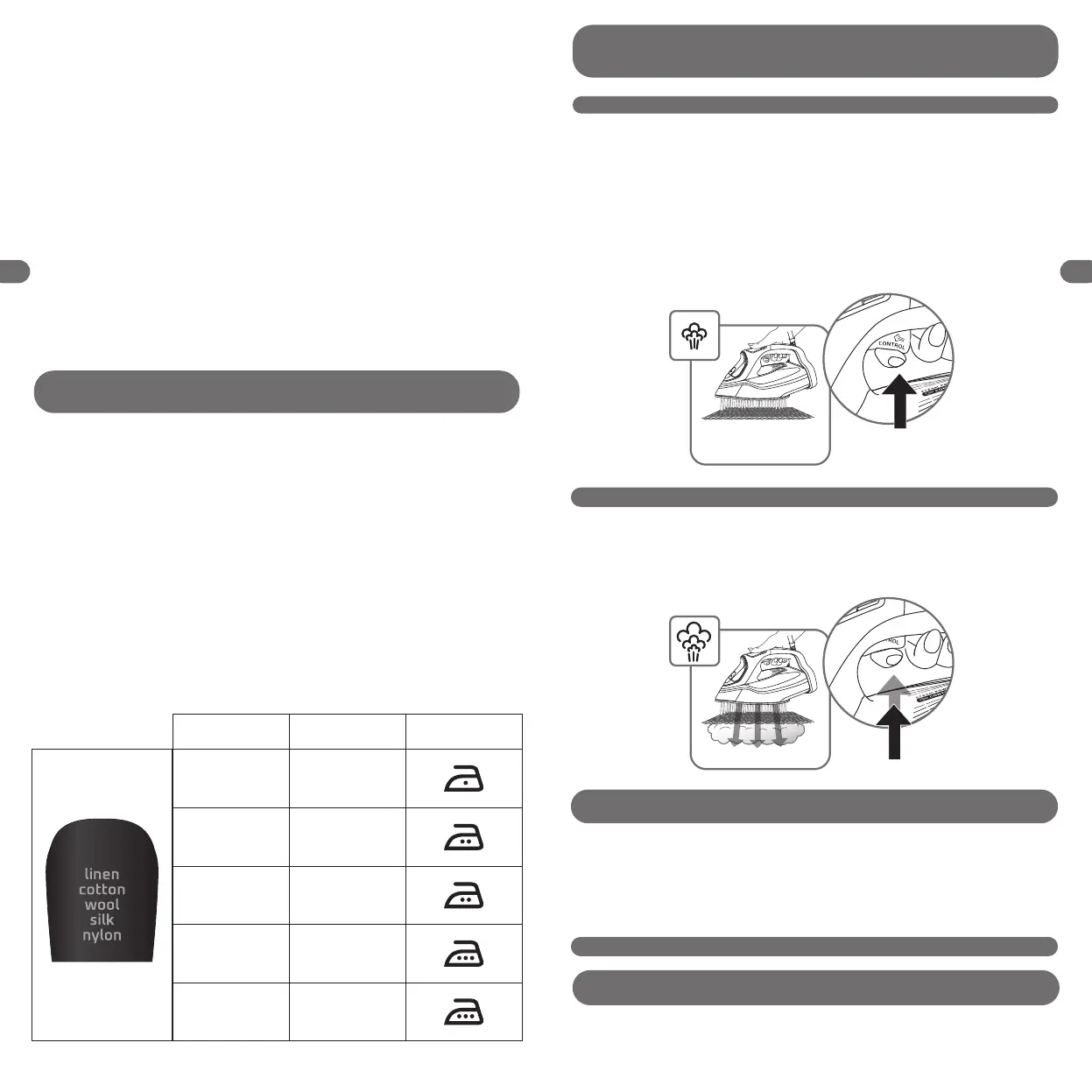 obtener resultados óptimos. Selecciona el tipo de tela que se va a planchar presionando